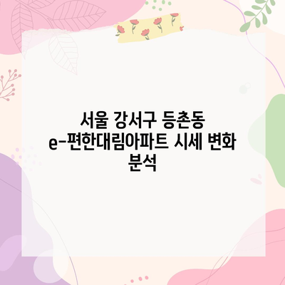 서울시 강서구 등촌동 e-편한대림 아파트의 2025년 5월 시세 동향을 심층적으로 살펴보고, 매물 현황과 전망을 논의합니다.