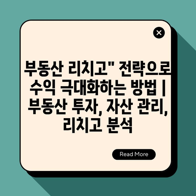 부동산 리치고 전략으로 수익을 극대화하는 방법에 대해 알아보겠습니다.