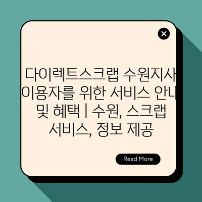 다이렉트스크랩 수원지사 이용자를 위한 서비스 안내 및 혜택 | 수원, 스크랩 서비스, 정보 제공 에 대해 자주 묻는 질문 TOP 5