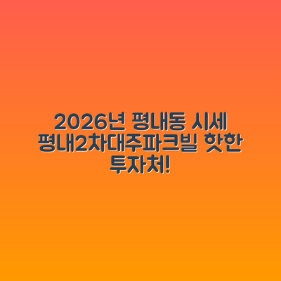 안녕하세요, 여러분! 아파트 투자를 고민하고 계신가요? 저도 얼마 전까지 그 고민을 했었답니다. 경기도 남양주시의 평내마을평내2차대주파크빌 아파트, 2026년 2월 시세에 대해 알아보는 것에서 시작했죠. 여기서 몇 가지 유의사항을 공유하고 싶어요!