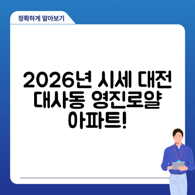 2026년 2월 대전시 중구 대사동 영진로얄 아파트의 시세를 이해하기 위한 단계별 가이드입니다. 이 정보를 통해 시장 동향을 파악하고, 매매 또는 전세 거래에 대한 결정을 내리는 데 도움을 줄 수 있습니다.