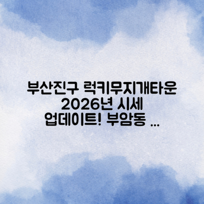 부산진구 부암동의 아파트 시세는 최근 몇 년간 변동이 심해 여러 투자자들이 불안감을 느끼고 있습니다. 특히, 럭키무지개타운 아파트의 경우 2026년에는 2억 4,000만 원에서 시작해 연이어 시세가 상승할 가능성이 높지만, 그 예측이 무색하게도 하락할 수 있는 우려 때문입니다.